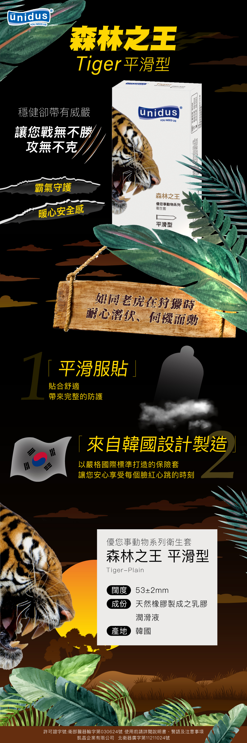 【雙11 11%off】Unidus優您事 動物系列衛生套-森林之王-平滑型 12入/盒